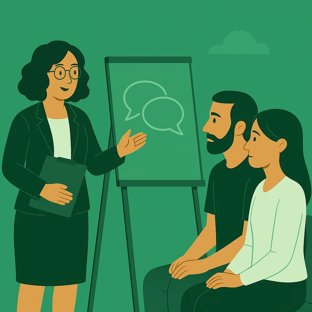آموزش مهارت‌های ارتباطی مؤثر برای حل و فصل اختلافات خانوادگی و زناشویی.